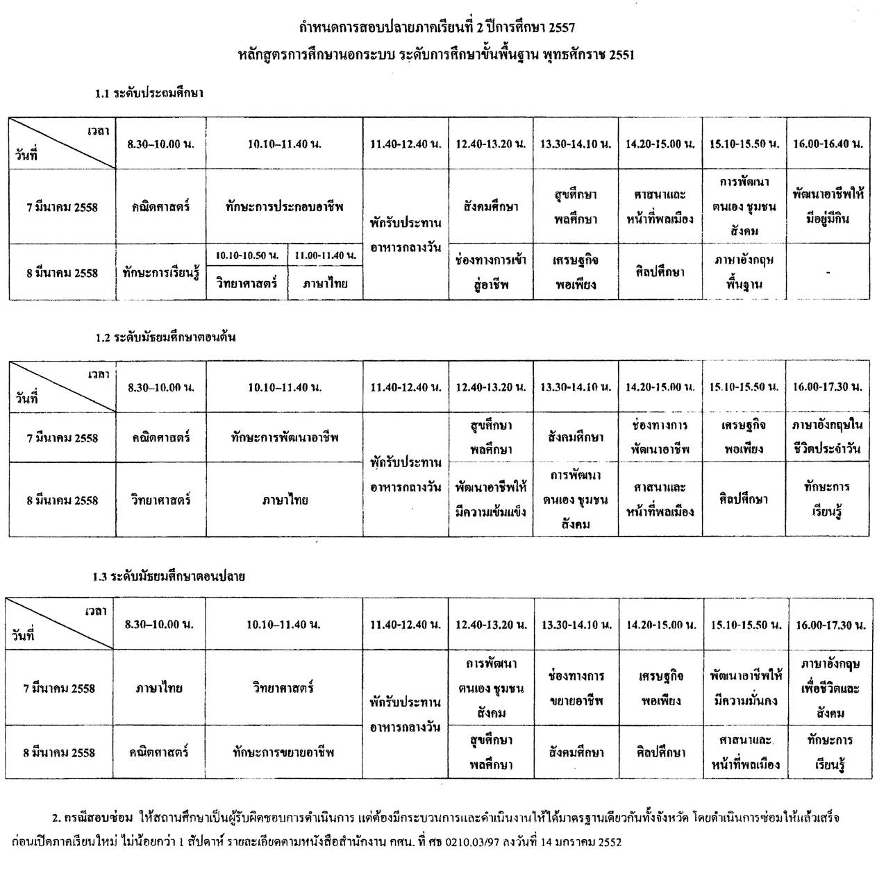 ตารางสอบปลายภาคเรียนที่ 2 ปีการศึกษา 2557 |